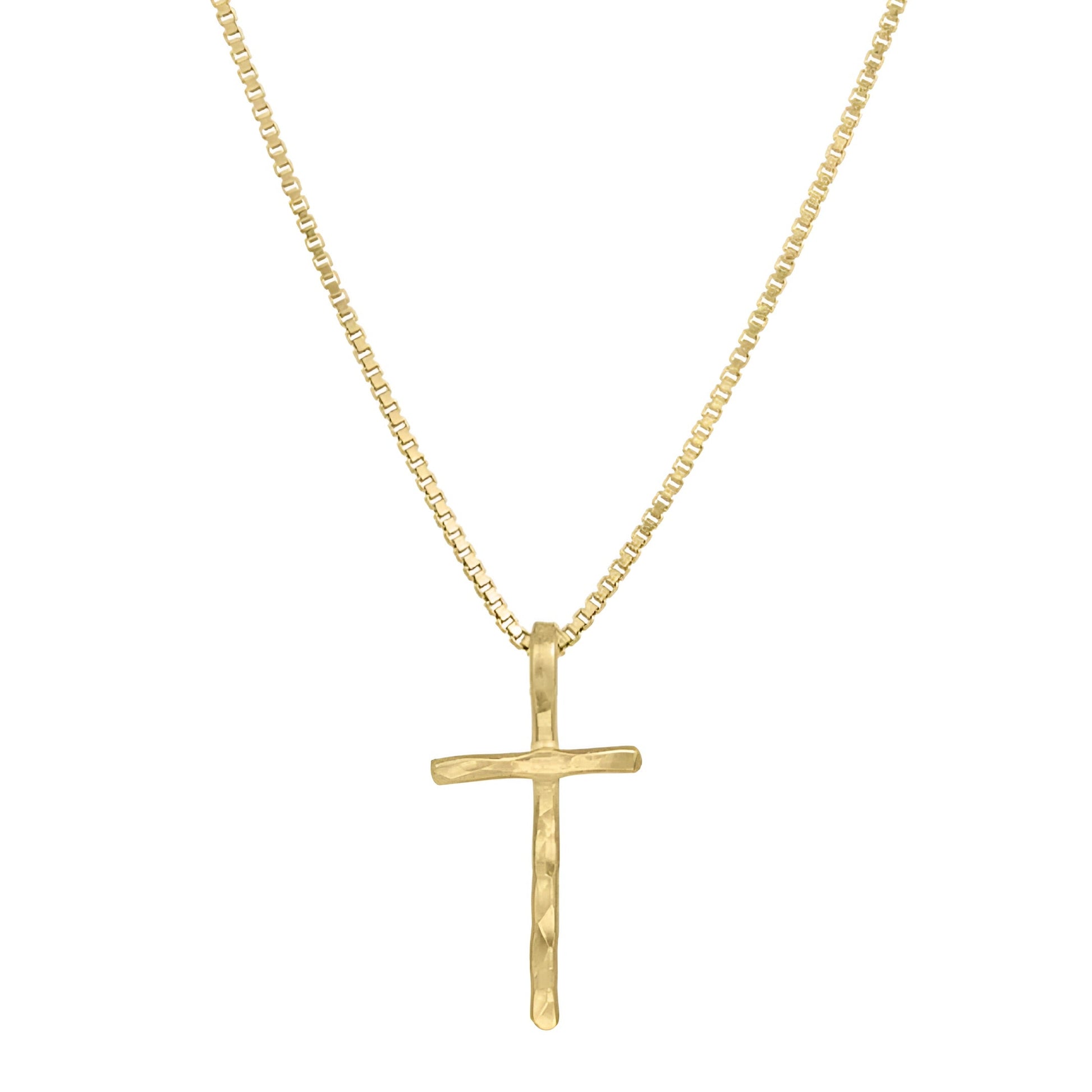 Gold Plated Hammered Cross Necklace – Simple Textured Pendant Design